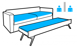 İhtiyaç olduğunda altındaki yatağı öne doğru çekip sonrada yukarı kaldırın.İkisi yan yana, birlikte çift kişilik yatak ( 160X 190cm ) olarak kullanılır.